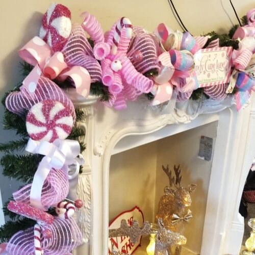 The Perfect example of this is the PINK CANDY CANE GARLAND attached below, this style of garland can be hung indoors as a fireplace Garland or used as a front door Christmas Garland.